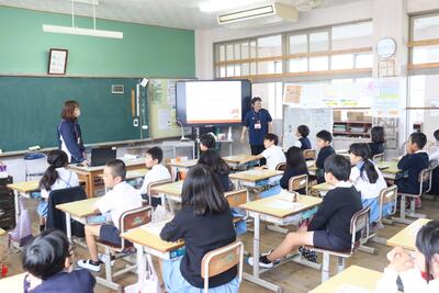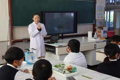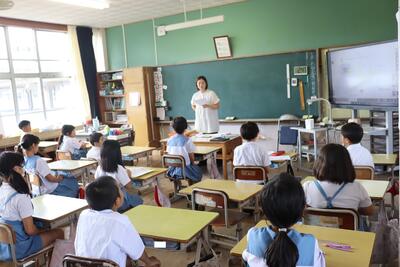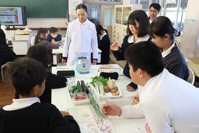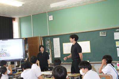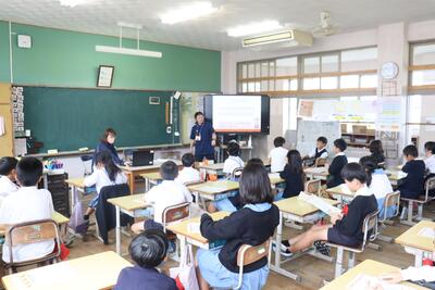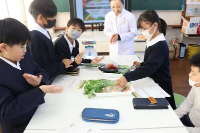 5,6年生は食育に関する出前講座を行いました。野菜の栄養について学習を深めることができました。最後に、プレゼントをもらいました。何をもらったかは、下の給食の写真で探してみてください!