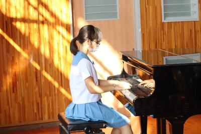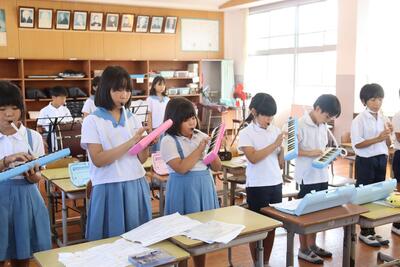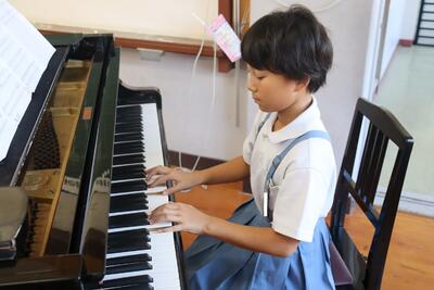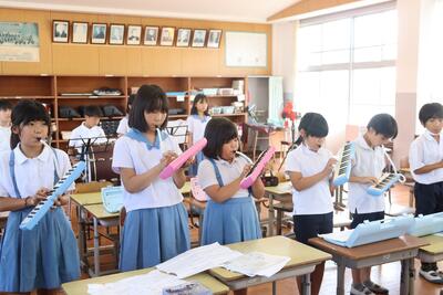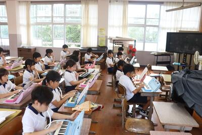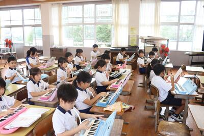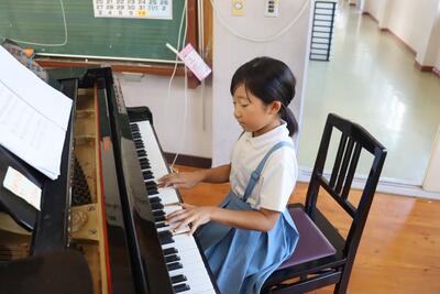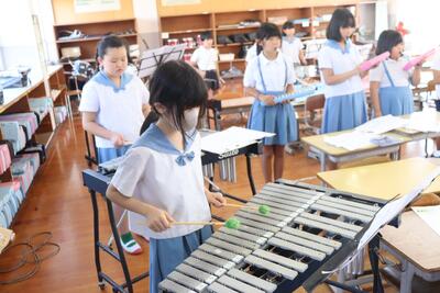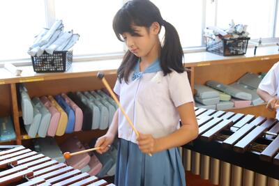 さて、4年生は音楽大会に向けて、合唱曲「ビリーブ」と器楽合奏「青と夏」の2曲を猛練習中です。木琴・鉄琴・ピアノ・リコーダー・鍵盤ハーモニカ・ドラム・タンバリンなど、さまざまな楽器を使って一つの音楽を作り上げます。みんな真剣な表情で練習に取り組んでおり、楽譜を見つめる目には「絶対に成功させたい!」という強い気持ちが感じられます。木琴を丁寧に叩く姿、ピアノの鍵盤に集中する指先、リズムを合わせて打楽器を演奏するチームワーク!。どの瞬間も、音楽を通して仲間と心を通わせる大切な時間です。「ビリーブ」の歌詞には、未来を信じる力や仲間との絆が込められています。そして「青と夏」は、爽やかなメロディーの中に、夏の思い出や青春の輝きが詰まった一曲。4年生の子どもたちが奏でる音楽は、きっと聴く人の心に届くことでしょう。本番まであと少し!みんなで力を合わせて、最高のステージを目指してがんばりましょう!