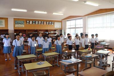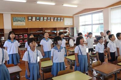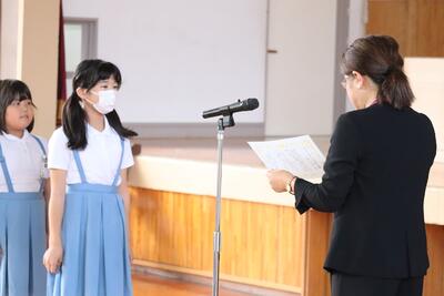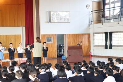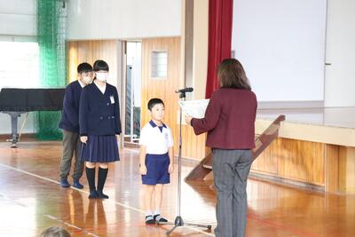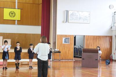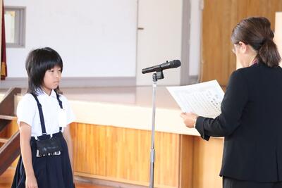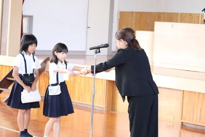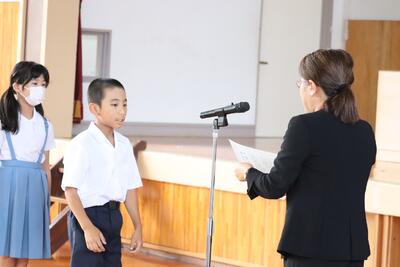 始業式では、2人の児童が1学期の振り返り、2学期の目標について素晴らしい内容を発表してくれました。そして、校歌斉唱では6年生が立派にピアノ伴奏をしてくれました。最後に、表彰が行われました!