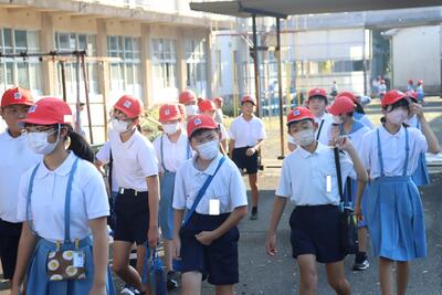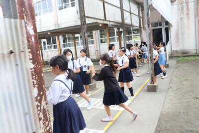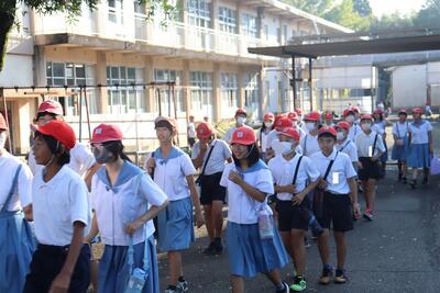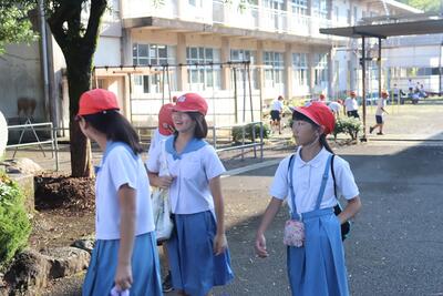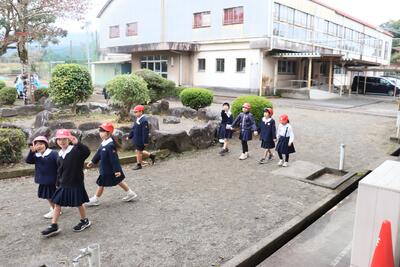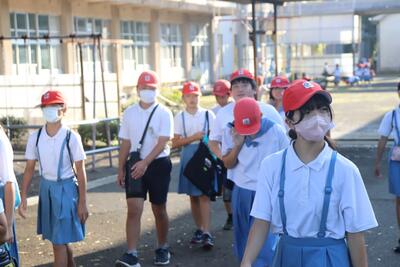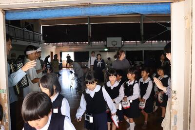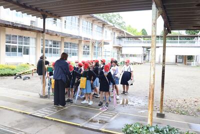 6年生が、2日間の修学旅行を終えて学校に帰ってきました。荷物を抱え、整列して先生の話を聞く姿からも、充実した時間を過ごしたことが伝わってきます。少し疲れた様子もありますが、それ以上に「やりきった!」という達成感が感じられる場面です。この修学旅行で学んだこと、体験したことは、きっとこれからの学校生活に大きな力になるでしょう。保護者の皆様、準備やサポートありがとうございました。