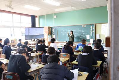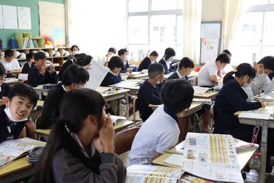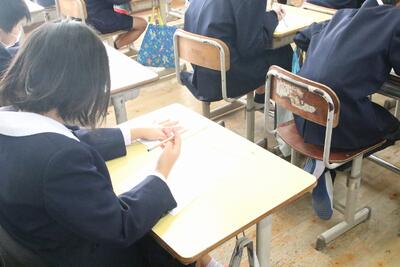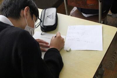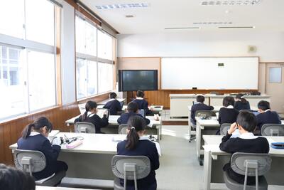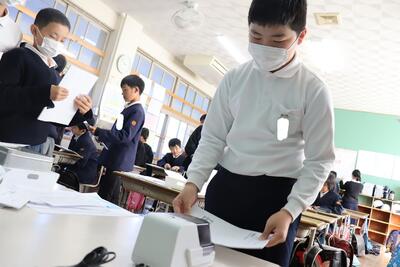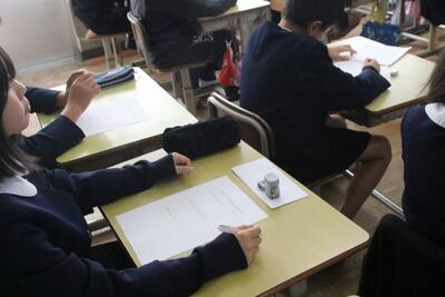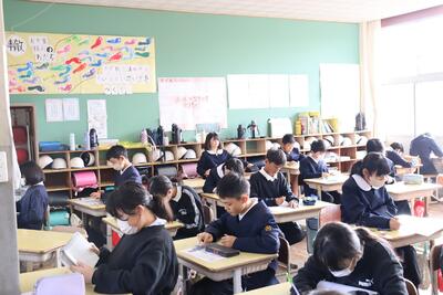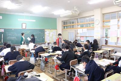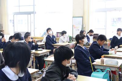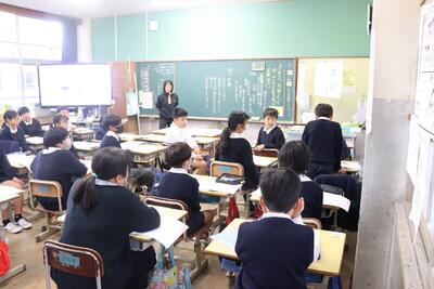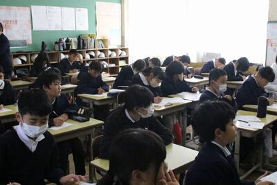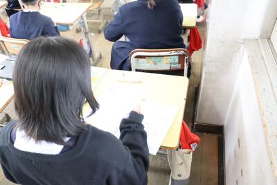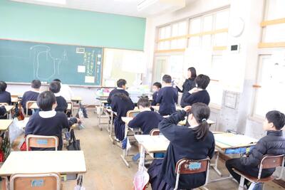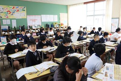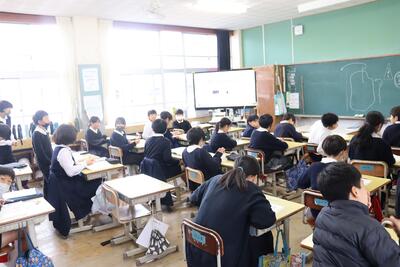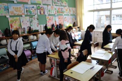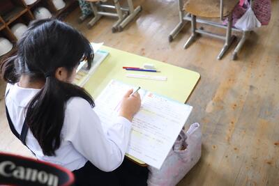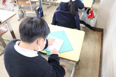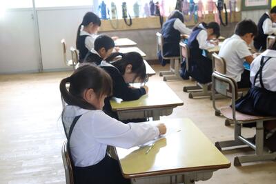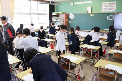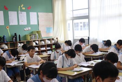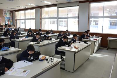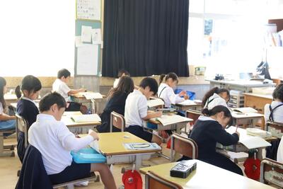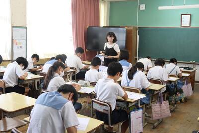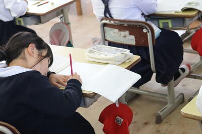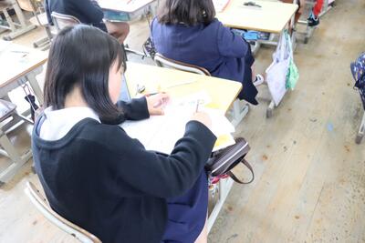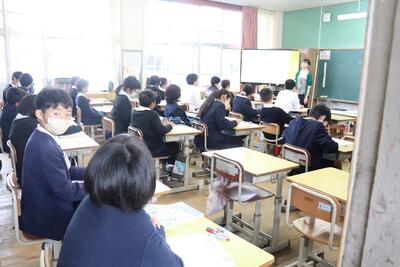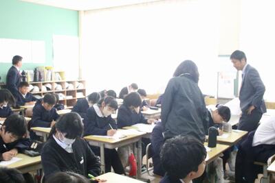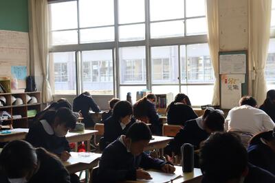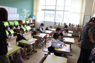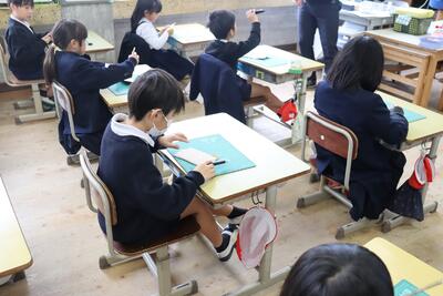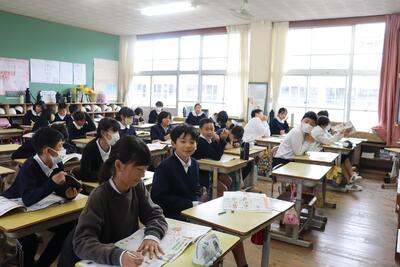中学校の雰囲気を肌で感じながら、「自分たちもあと少しで中学生なんだ!」という実感が湧いてきたようです。6時間目の英語のテストは、いつも以上に真剣に取り組んでいました。