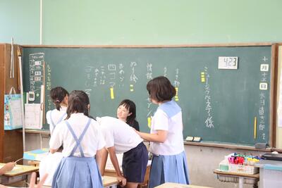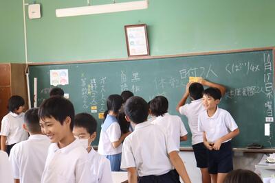今日から2学期が始まりました。始業式では、校長先生、代表の児童、係の先生のお話をみんな真剣なまなざしで聞いていました。教室では、さっそく係決めや目標づくりが行われました。黒板には「準備の時間をつくる」「心の準備をする」など、生活の柱となる言葉が並び、子どもたちはグループで話し合いながら、2学期の過ごし方を考えていました。
