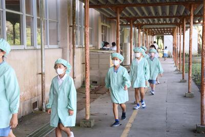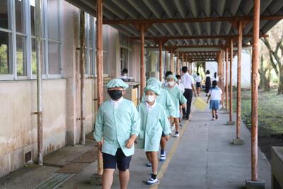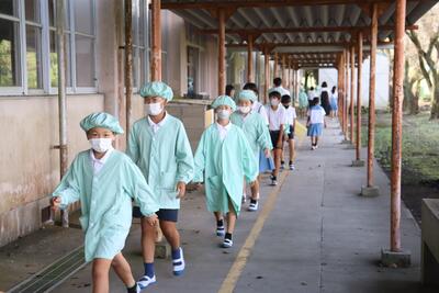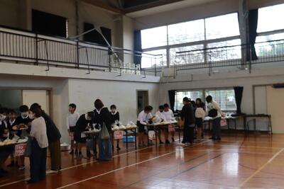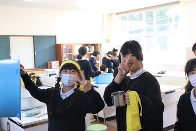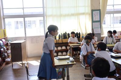 昨日に続き、本日も西小林中学校の生徒さんが職場体験学習にやってきました。今日は、3年生と4年生で体験しました。※6年生の給食の写真が1枚だけあります。
