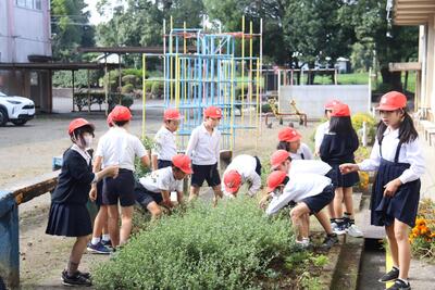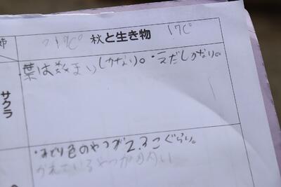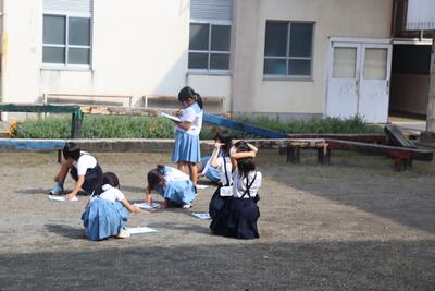 理科の学習で、4年生が校庭や花壇に出て「秋の植物や昆虫」を観察しました。「葉の色が少しずつ変わってきている」「虫の姿が少なくなった」など、季節の移り変わりを感じる発見がたくさん。観察カードには、葉の枚数や枝の様子、見つけた昆虫の特徴などが丁寧に書き込まれていました。
