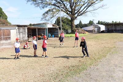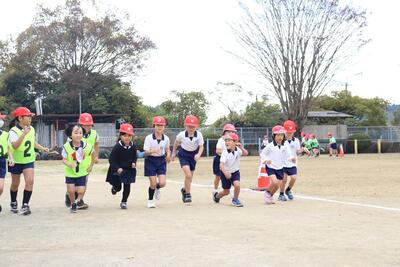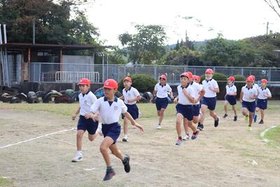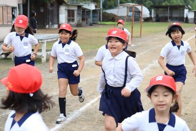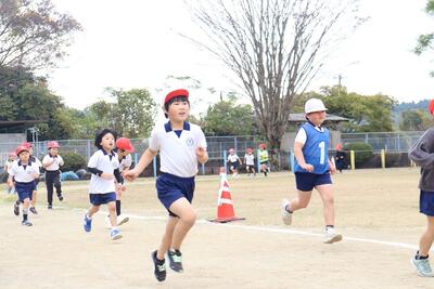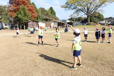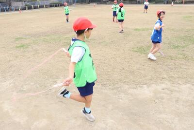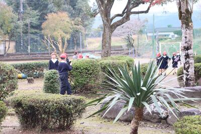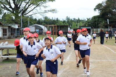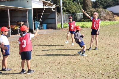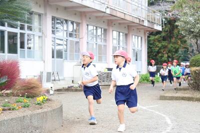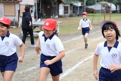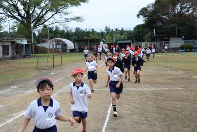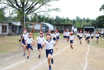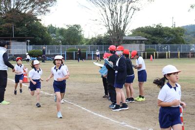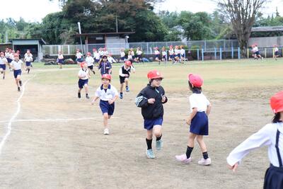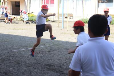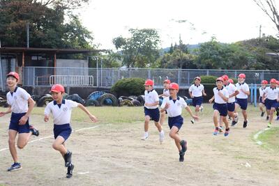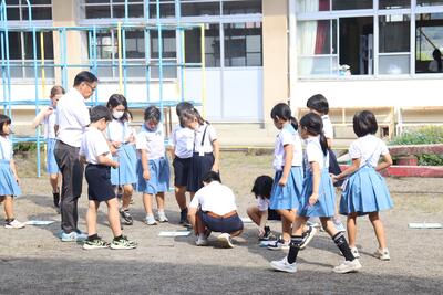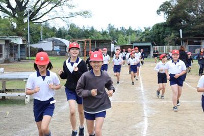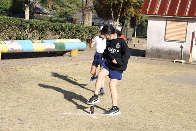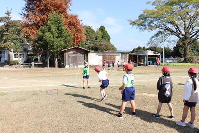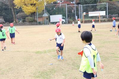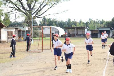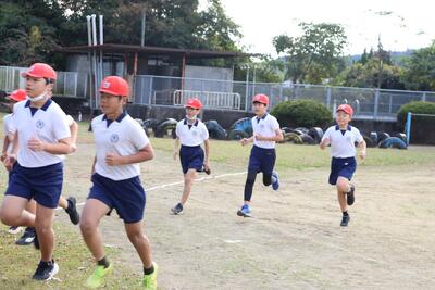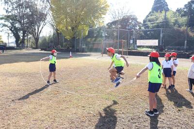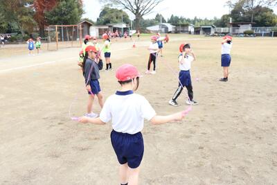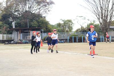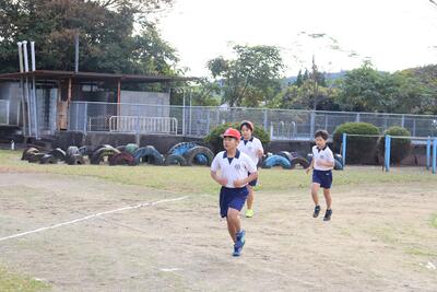 1年生と3年生が合同で体育を行いました。まずは長縄跳びに挑戦!タイミングを合わせるのに四苦八苦しながらも、声を掛け合って楽しく活動しました。その後は持久走大会に向けた練習です。3年生の力強い走りに、1年生も刺激を受けて一生懸命走っていました。学年を超えた交流の中で、体力だけでなく協力する気持ちも育まれた時間となりました!