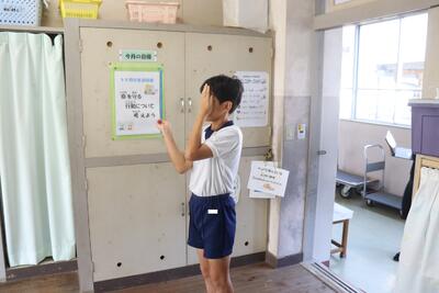 1~4年生は、身体計測&視力検査でした。保健室では、片目を隠してランドルト環を見つめる姿が!。静かに順番を待っている姿も、なんだかかわいらしいです。