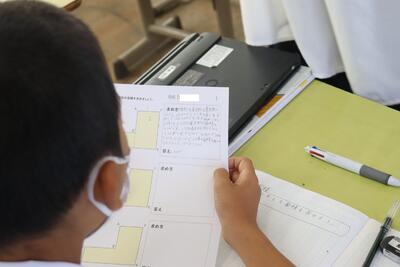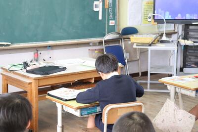 今日は4年生が、みやざき学習状況調査に取り組みました。国語と算数のテストを、タブレットを使って実施しました。画面を見ながら問題を解いたり、必要に応じて配られた白紙に計算やメモを取ったり、とても集中していました。