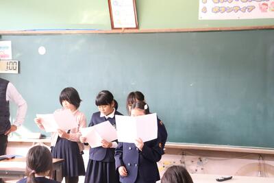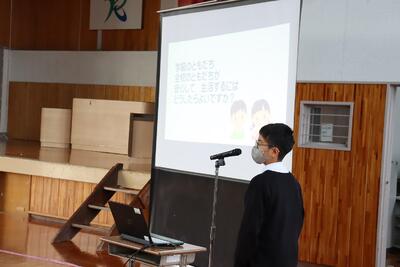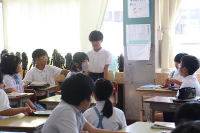 5年生は、自分の考えを堂々と発表する姿はとっても立派でした。「こう思います」と、教室には前向きな言葉がいっぱい!黒板にはみんなの意見が書かれていました。その言葉どおり、やさしさと思いやりがあふれる時間になりました。