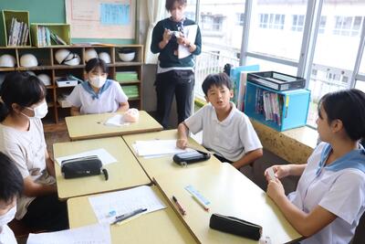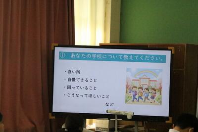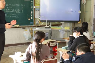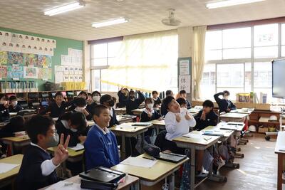 6年生は教育委員会の先生方と「これからの学校」について意見交換を行いました。スクリーンには「あなたの学校について教えてください」というテーマが映し出され、・良いところ・自慢できること・困っていること・こうなってほしいことなど、子どもたちが考えるきっかけになる質問が提示されました。まずは自分の考えをじっくりと紙に書き出し、その後、全体で発表しました。「もっとこうしたら楽しい学校になる」「こんな工夫があればみんなが過ごしやすい」など、6年生ならではの視点で、たくさんの意見が出されました。教育委員会の先生方も子どもたちの声に耳を傾け、質問やアドバイスをしてくださいました。子どもたちの真剣な表情から、学校づくりに対する意欲が感じられました。