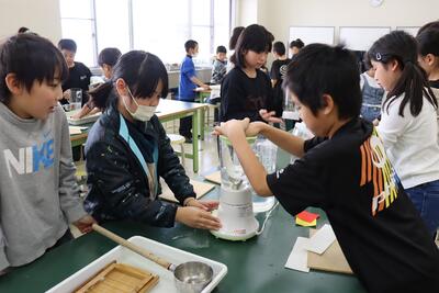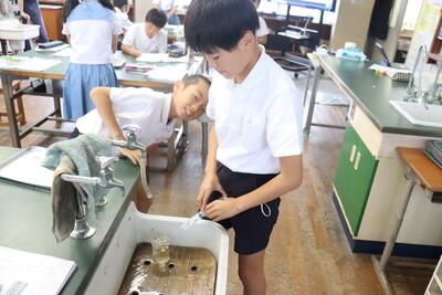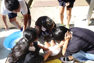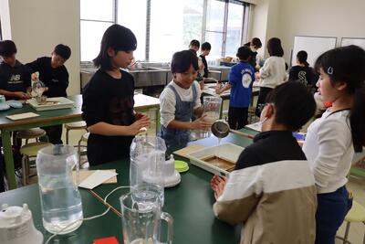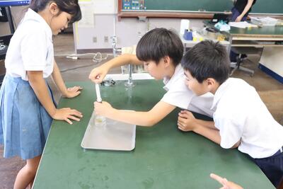 今日は4年生が理科の授業で「閉じ込めた空気や水」について学習しました。注射器や水槽を使って、空気を閉じ込めたり、水の中でどうなるかを観察したり…。みんな「どうなるんだろう?」とワクワクしながら取り組んでいました。