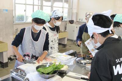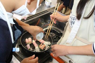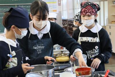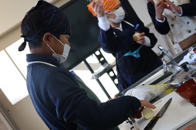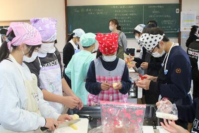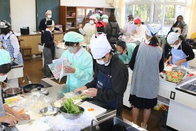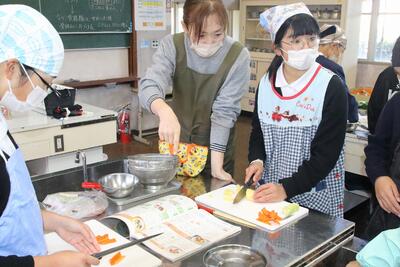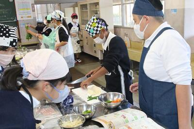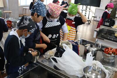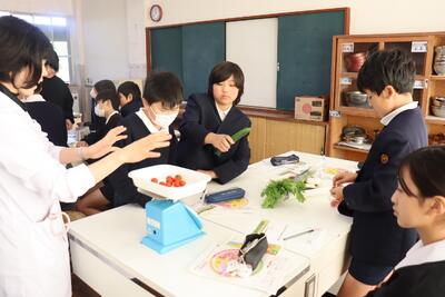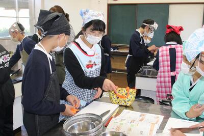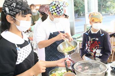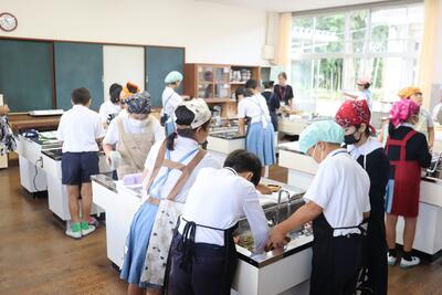 今日は、6年生が家庭科の授業で調理実習を行いました。各班ごとにメニューを決め、材料の切り方や盛り付けまで工夫をこらして取り組みました。野菜をきれいに切る人、炒める人、味付けを確認する人…役割分担をしながら、協力して進める姿がとても頼もしかったです!
