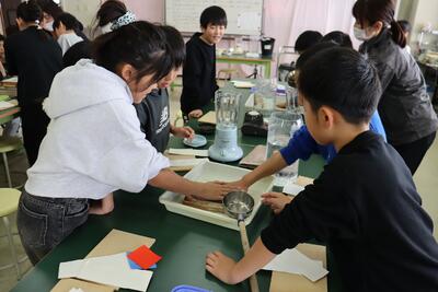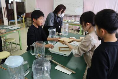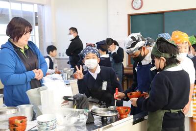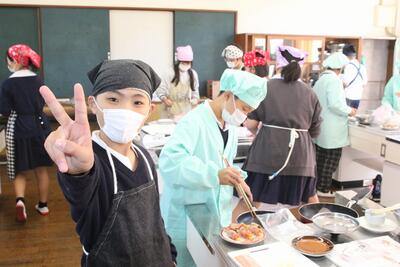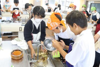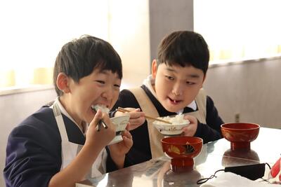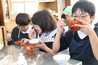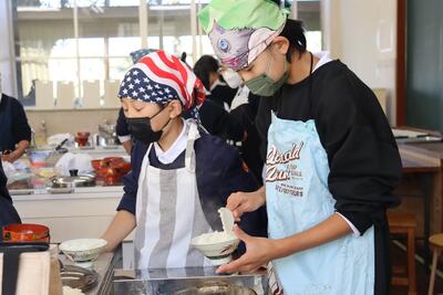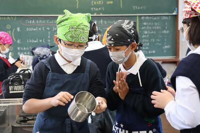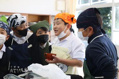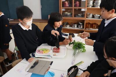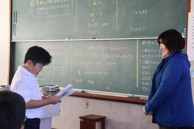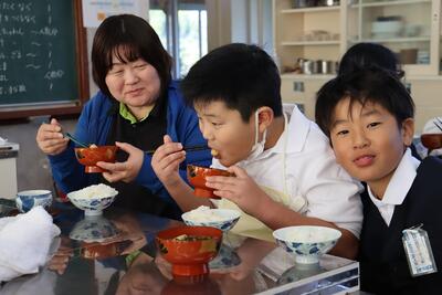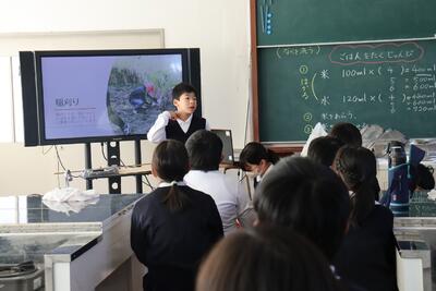 5年生は調理実習を行いました。今回のテーマは 「ごはんと味噌汁」。お米作りでお世話になった方々を学校にお招きし、感謝の気持ちを込めて一緒に食事をしました。調理室では、グループごとに分かれて準備開始。お米をとぐ手つきも真剣そのもの。味噌汁には、だしの取り方や具材の切り方など、学んだことを活かして丁寧に作りました。鍋の中で煮立つ味噌汁からは、だしの香りが広がり、教室いっぱいにおいしい匂いが漂います。食事の時間には、炊きたてのごはんと温かい味噌汁を囲みながら、お世話になった方々と楽しいひととき。食後は、調べ学習の成果を発表。お米の歴史や栽培の工夫、地域の取り組みなど、班ごとにスライドを使ってわかりやすく説明しました。最後に、全員で「ありがとうございました!」と感謝の言葉を伝え、心温まる時間となりました。今回の調理実習を通して、食の大切さやお米作りに関わる人々への感謝を改めて感じることができました!