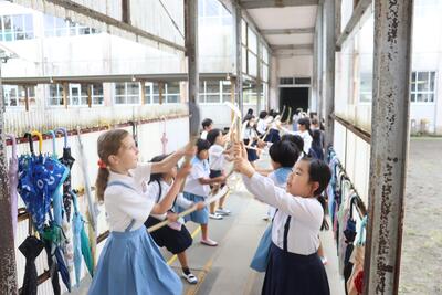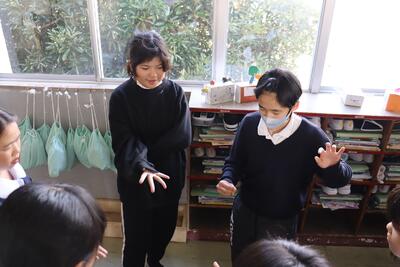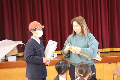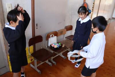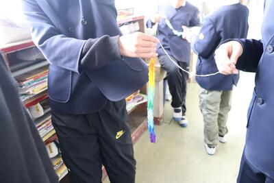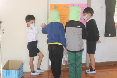 2年生は、明日行われる「おもちゃ祭り」に向けてリハーサルをしました。明日は、近隣の幼稚園や保育園の子どもたちを招待し、手作りのおもちゃや楽しい遊びを体験してもらいます。今日は、グループごとに準備した遊びを試しながら、説明の仕方や進め方を確認しました。ボウリングやパズル、折り紙など、工夫いっぱいの遊びが並び、子どもたちも「どうしたら楽しんでもらえるかな?」と真剣に考えていました。明日の本番がとても楽しみです!