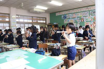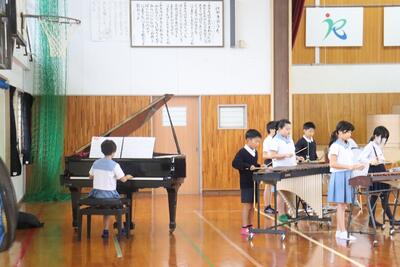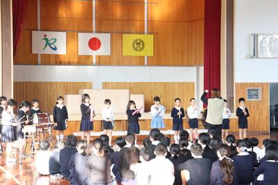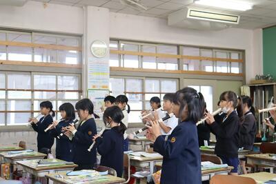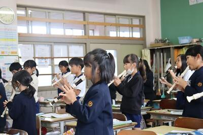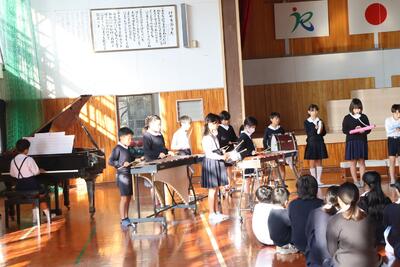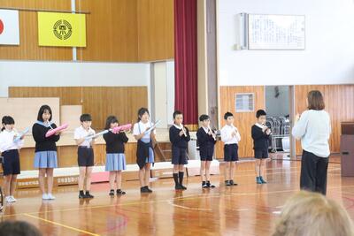 4年生は音楽大会で演奏する予定の曲を保護者の皆さんの前で披露しました。ほどよい緊張感の中、子どもたちは一生懸命に演奏に取り組み、それぞれのパートが美しく調和していました。指揮をする先生の合図に合わせて、息を合わせる姿からは、これまでの練習の成果と仲間との絆が感じられました。保護者の皆さんからは、演奏が終わった後に温かい拍手が送られ、子どもたちの表情には達成感があふれていました。冷たい雨の日でしたが、心がぽかぽかと温まる、素敵な時間となりました。