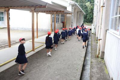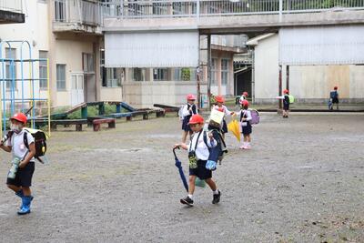 1年生の算数では、定規を使って図形を描く練習中。みんな真剣な表情で、丁寧に線を引いていました。教室にはやさしい光が差し込んでいて、集中しやすい雰囲気。机の上には定規と鉛筆がきちんと並んでいて、なんだか頼もしいです。そして、下校の時間にはちょうど雨がやんでくれてよかったです!赤い帽子の1年生たちは、軽やかな足取りで校庭を歩いていました。