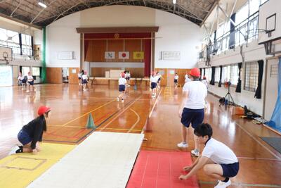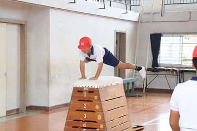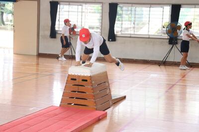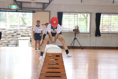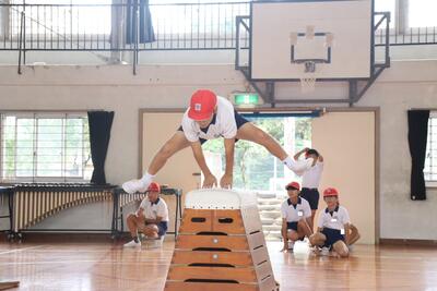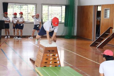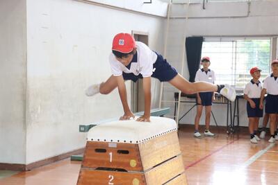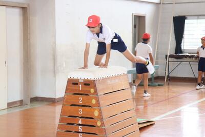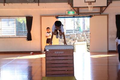 4年生は、体育で跳び箱。以前とは違う技に挑戦していました!