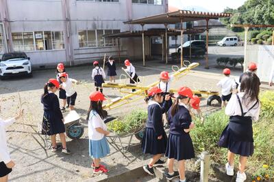 4年生は音楽大会に向けてのリハーサルを行いました。体育館では、大会当日に演奏する2曲を披露しました。舞台の上で真剣に演奏する姿、指揮者の合図に合わせて息を合わせる姿、そして観客として見守る他の児童たちの姿が印象的でした。本番に向けて、みんなで心をひとつにして練習に取り組んでいます。また、花植えに向けて花壇の整備も行いました。雑草を抜いたり、土を耕したりと、協力しながら作業を進めていました。