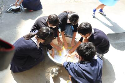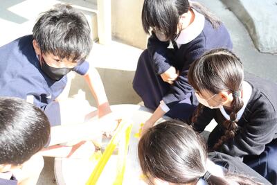 3年生は、理科の授業で太陽の動きを観察しました!校庭に出て、紙に影の位置を記録しながら、時間ごとの太陽の動きを調べていました。みんなで協力して、楽しそうに観察している様子がとってもいい感じでした。