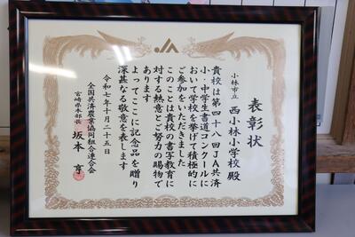 JA共催小・中学生書道コンクールにおいて、学校賞を頂きました。副賞として、テントを頂きました。みなさんの頑張りが評価された結果です!