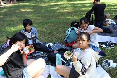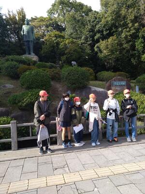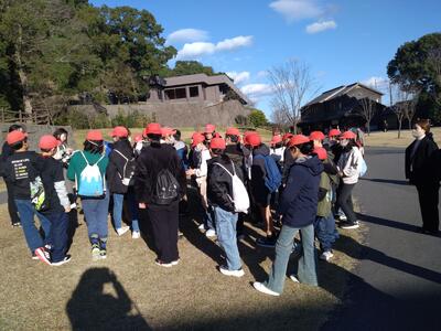 昼から始まった自主研修も、予定通り無事に終了しました。班ごとに計画を立て、協力しながら目的地を巡る姿はとても頼もしかったです。集合場所では、みんながしっかり時間を守り、最後まで笑顔で活動できました。その後、次の目的地である 仙厳園 に到着!歴史と自然が調和した美しい庭園には、薩摩藩の歴史を感じさせる石垣や建物、そして雄大な桜島を望む絶景など見どころいっぱいです。