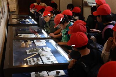 さて、今日は、5年生が小林から宮崎へ遠足に出かけました。目的地は 宮崎県総合博物館。歴史や自然、昔の暮らしを学べる施設で、子どもたちは興味津々でした。館内では、学芸員さんの説明を聞きながら展示を見学。昔の生活道具や宮崎の文化について熱心に耳を傾けています。実際に昔の家屋を再現した部屋に入り、ちゃぶ台を囲んで座る体験もしました。「昔の家ってこうだったんだ!」と驚きの声があがっていました。自然展示コーナーでは、大きな木や動物の模型を前に、「この木はどれくらいの年齢かな?」と考えながら観察する姿も。また、化石や石器の展示では、ガラスケースを覗き込みながら「これ、本物かな?」と興味津々の様子でした。お昼は、博物館の外の芝生広場でお弁当タイム。シートを広げて友達と楽しく食べる姿が見られました。青空の下で食べるお弁当は格別です!宮崎の歴史や自然についてたくさん学んだ一日を振り返りました。「また来たい!」という声もたくさん聞こえ、充実した遠足になりました。