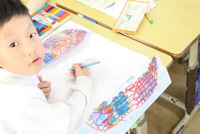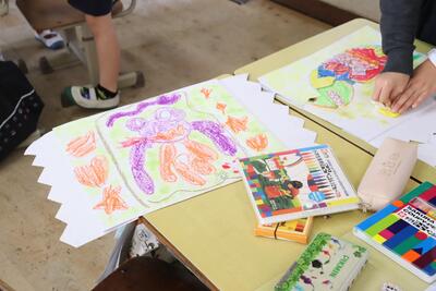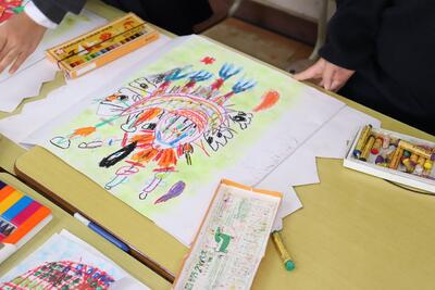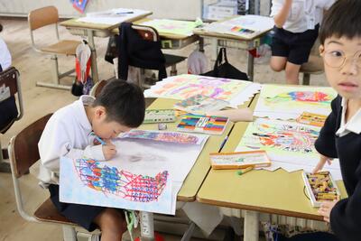 2年生が図工の時間に、色とりどりのクレヨンやパステルを使って素敵な作品を制作しました。机の上には、鮮やかな色で描かれたユニークな形や模様が並び、子どもたちの自由な発想があふれています。作品にはカラフルな線や大胆な色使いが目立ち、見ているだけで楽しい気持ちになります。一人ひとりが集中して取り組み、丁寧に色を重ねる姿はまさに「芸術家」。完成した作品は、どれも個性豊かで、教室が美術館のような雰囲気になりました。これから掲示されるのが楽しみですね!
