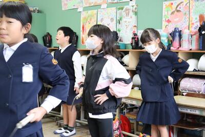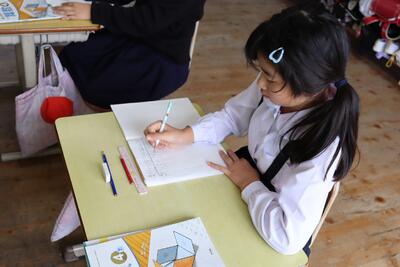 寒さに負けず、子どもたちは元気いっぱいに練習や学習に取り組んでいます。今日は、1年生が5年生と一緒に持久走の練習をしました。広い校庭を走る姿からは、「大会に向けて頑張ろう!」という気持ちが伝わってきます。5年生がペースを作り、励ましながら走ることで、1年生も最後まで力を出し切ることができました。教室では、4年生が算数の学習に真剣な表情で取り組んでいました。難しい問題にもあきらめず挑戦する姿がとても頼もしいです。1年生は書写の時間に筆順の確認をしながら、丁寧に文字を書く練習をしていました。正しい筆順で書くことを意識しながら、集中して取り組んでいました。2年生は図工でカッターの使い方を練習中。安全に気をつけながら、思い通りに切るのはなかなか難しく、苦戦しながらも工夫して頑張っていました!(3年生は校外学習でした。)