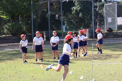 6年生は、陸上大会に向けて本気モード!校庭では、6年生が陸上大会に向けて練習中!白線の引かれたフィールドで、リレーやハードル走などにチャレンジしていました。みんな真剣な表情で走っていて、見ているこちらも応援したくなります!