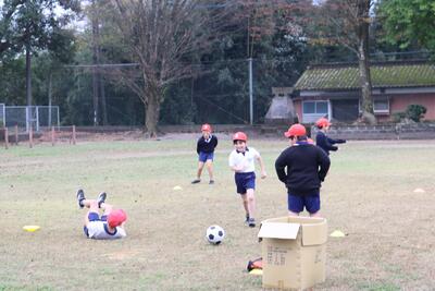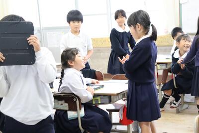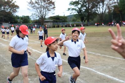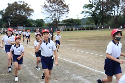 5年生は体育の最後に、鬼ごっこをしました。鬼ごっこが始まると、子どもたちは全力で走り出します。逃げる子、追いかける子、そしてカメラに向かってピースサインをする子。その一瞬一瞬が、まるで宝石のように輝いて見えました。写真には、そんな瞬間がたくさん写っています。笑顔で走る姿、仲間と笑い合う姿、そして一息ついて肩を並べる姿。どれもが、今この時を大切にしている証です。何気ないようで、実はとても特別な時間。きっと、いつか振り返ったときに、「あの日、みんなで走ったね」と笑い合える、そんな大切な記憶になることでしょう。