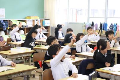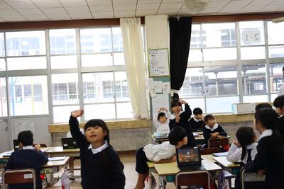 三年生、英語の授業で大盛り上がり!ALTの先生の声に合わせて、子どもたちは体を動かしながら楽しく学習!「Stand up!」「Put your hands up!」などの指示に、みんな元気いっぱいで応えます。教室中に笑顔と笑い声が広がり、英語を使ったアクティビティで大盛り上がりでした。体を動かしながら学ぶことで、言葉も自然と身についていきますね。