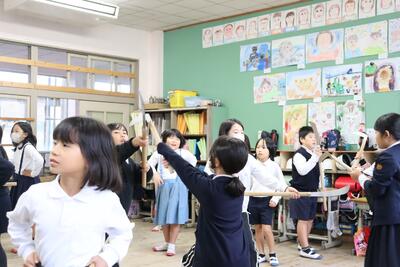 朝からしとしと雨が降っていますが、子どもたちはカラフルな傘をさして笑顔で登校してきました。ここ最近では一番肌寒い日となりましたが、教室の中はあたたかい笑顔と楽しい声でいっぱいです。