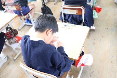3年生は国語の時間に、自分で考えた文章をクラスのみんなの前で発表しました。一人ひとりが工夫して書いた立派な文章を、しっかりと声に出して伝える姿はとても頼もしく感じます。聞いている友達も真剣そのもの。発表する人の言葉に耳を傾け、しっかりと受け止めていました。