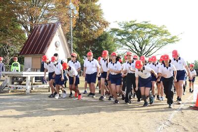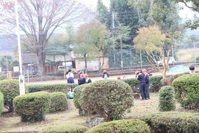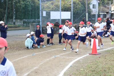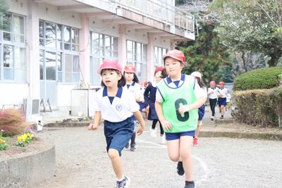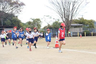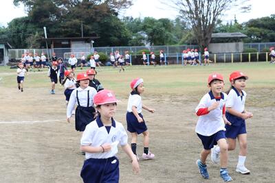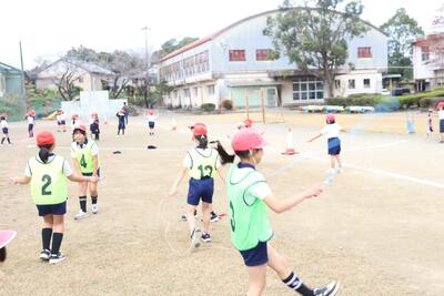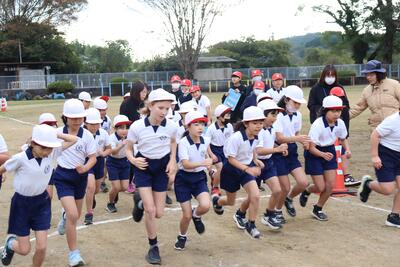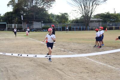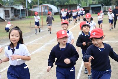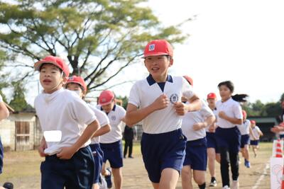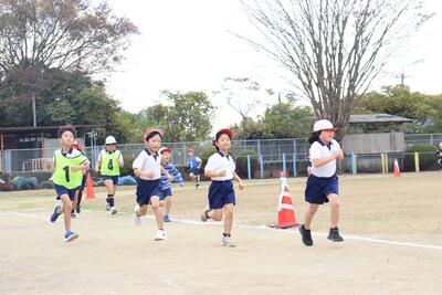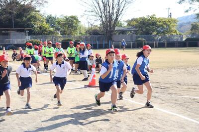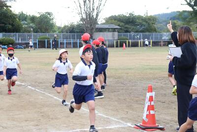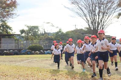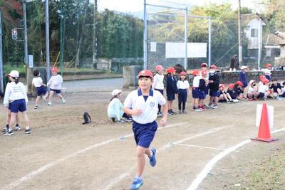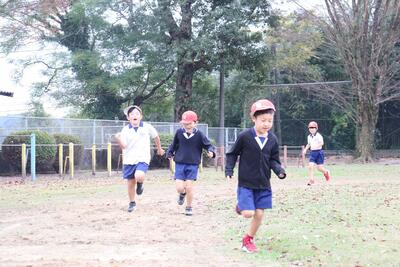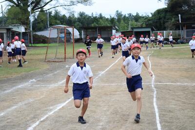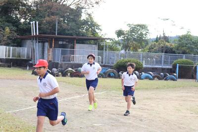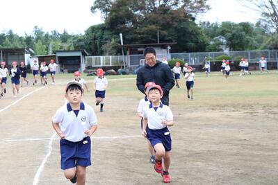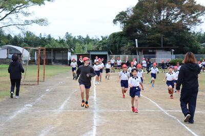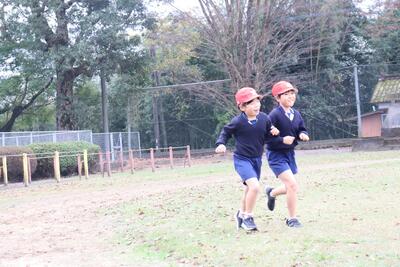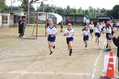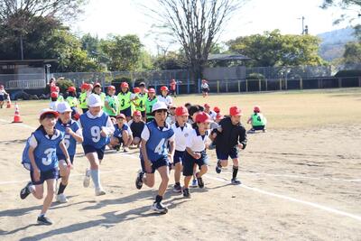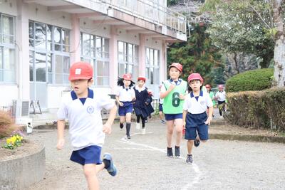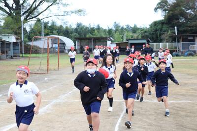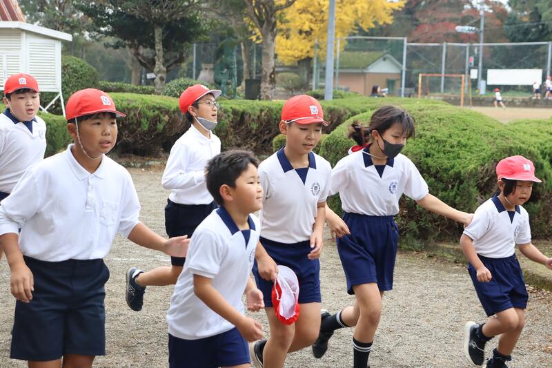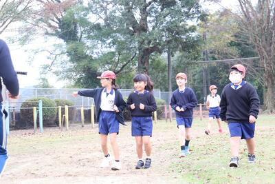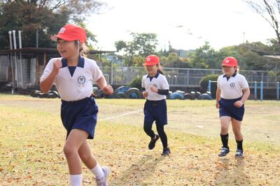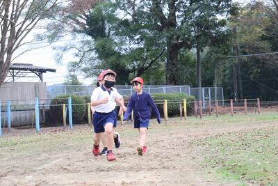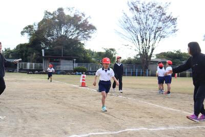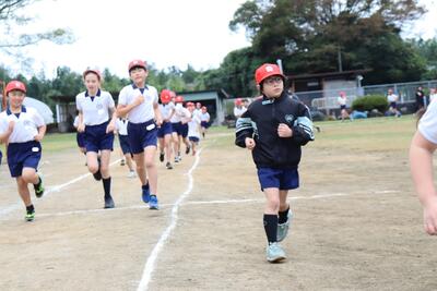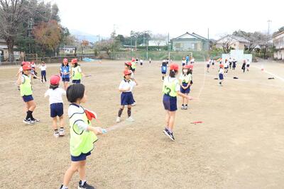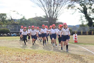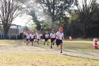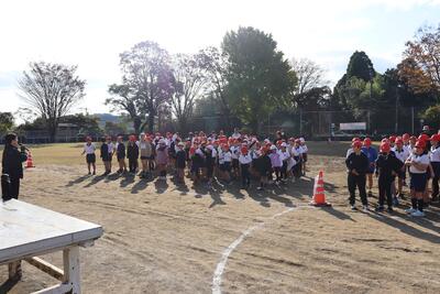 来週の持久走大会に向けて、今日は1~3年生が合同で体育の時間を過ごしました。まずは体をしっかり温めるために、準備運動として縄跳びに挑戦。広い校庭でリズムよく跳ぶ姿があちこちに見られました。寒さに負けず、軽やかに跳ぶ子どもたちの姿はとても元気です。その後は、いよいよ持久走の練習。校庭や校舎の周りを走るコースで、みんな一生懸命に足を運びます。スタートラインに並ぶときの真剣な表情、走り出したときの力強い動きから、来週の大会への意気込みが伝わってきます。特に頼もしかったのは3年生。1年生のペースを気にかけながら声をかけたり、並ぶ位置を教えたりと、しっかりとお世話をしてくれました。小さな仲間を支える姿に、成長を感じるひとときでした。寒さの中でも、子どもたちの頬は赤く、笑顔は輝いています。大会本番が楽しみです!