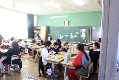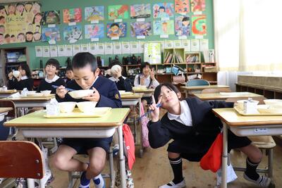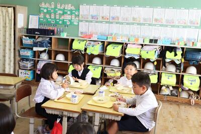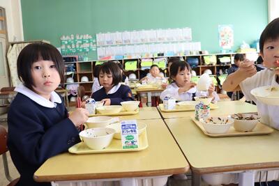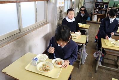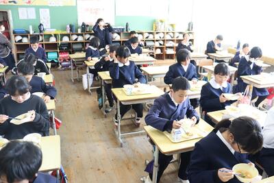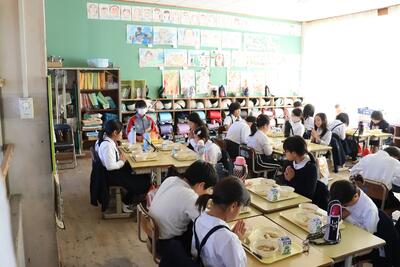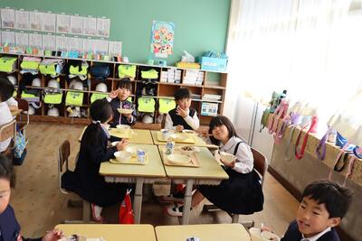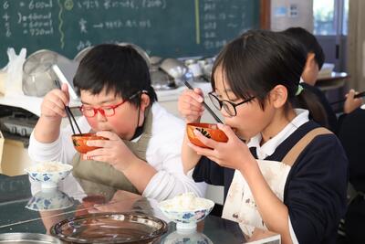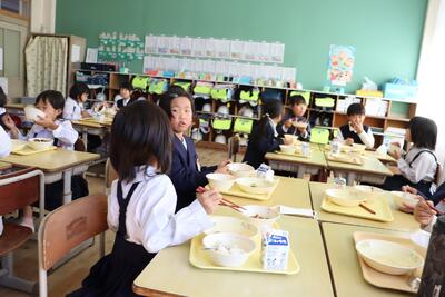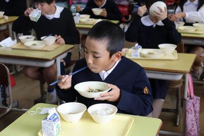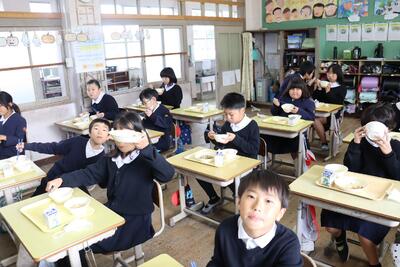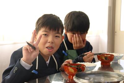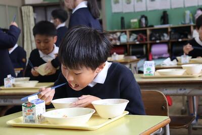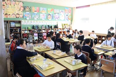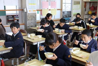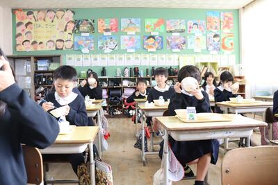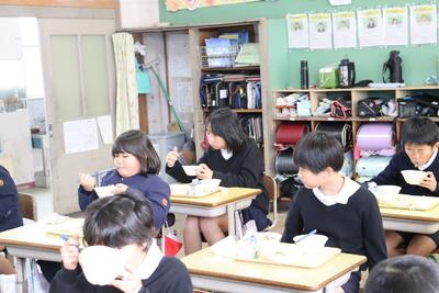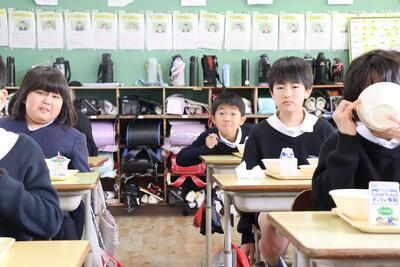 寒い日にぴったりのメニューが今日の給食です。4年生の教室では、温かいおでんを囲んで「おいしい!」という声があちこちから聞こえてきました。大根やこんにゃく、ちくわなど、味がしみ込んだ具材を一口食べると、体の中からぽかぽかと温まります。ごはんと一緒に食べるとさらに満足感たっぷり。牛乳を飲みながら、みんな笑顔で箸を進めていました。寒い季節ならではの給食メニュー。心も体も温まる時間になりました。
