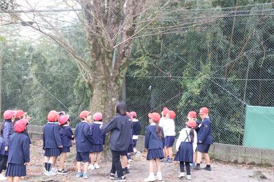 今日は朝からしっとりとした雨が降り、校庭の木々も嬉しそうに葉を濡らしていました。そんな中、1年生・2年生・6年生は幸ヶ丘小学校との交流活動を行いました。久しぶりの再会に笑顔があふれ、雨空を吹き飛ばすような元気な声が響いていました。