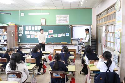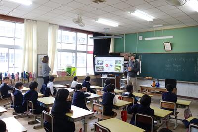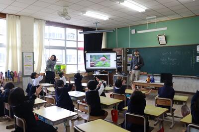 今日は1年生の教室で、ドイツ出身のロバート先生による国際交流の授業がありました。大型モニターに映し出されたドイツのキノコに子どもたちは興味津々。「これは何かな?」という問いかけに、たくさんの手が元気よく挙がります。授業では、ドイツの文化や暮らしについて、写真やクイズを交えながら楽しく学びました。教室の中は、まるで小さな世界旅行。子どもたちの目がキラキラ輝いていました。