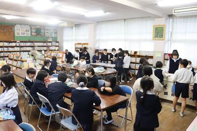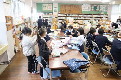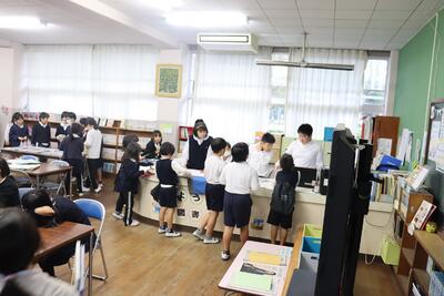 今日は4日ぶりの雨となり、肌寒い1日でした。昼休みも室内で過ごすことになり、図書室が大盛況でした。図書員のみなさんも大忙しでした!