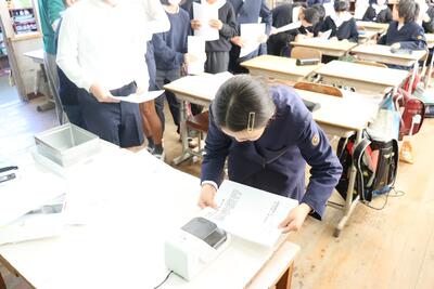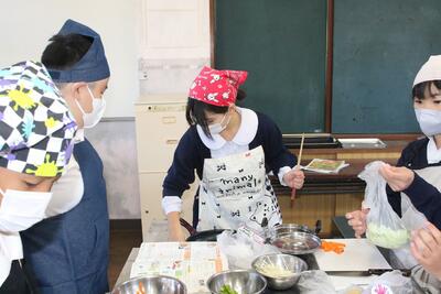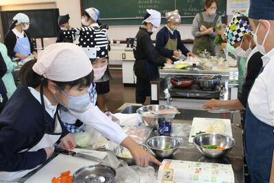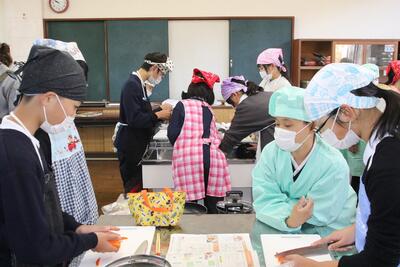 5年生は、調理実習に向けての確認や準備を行っていました。みんな真剣な表情で、準備を進めていいます。