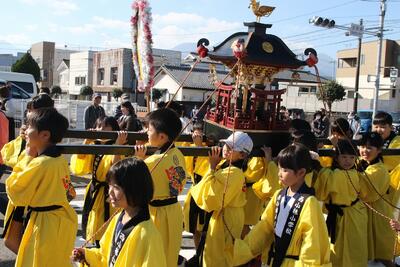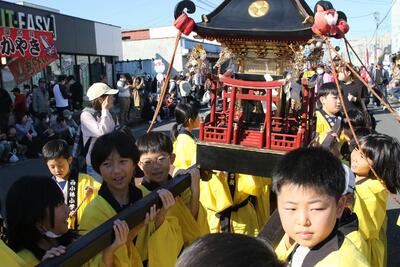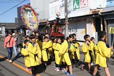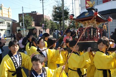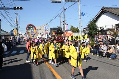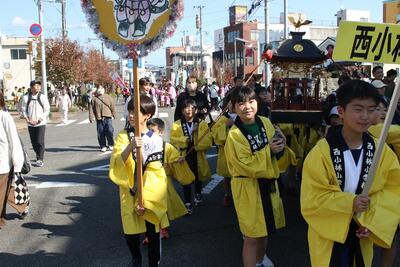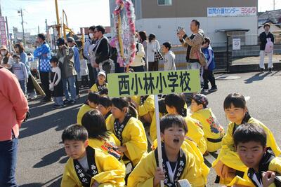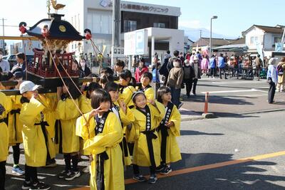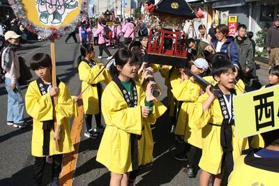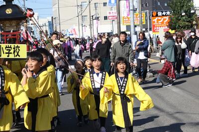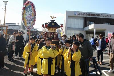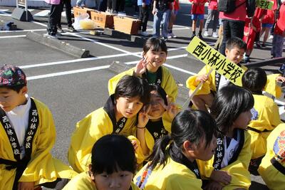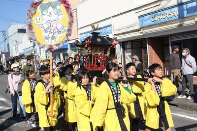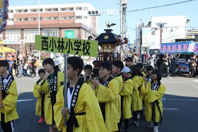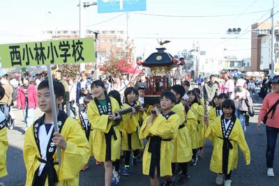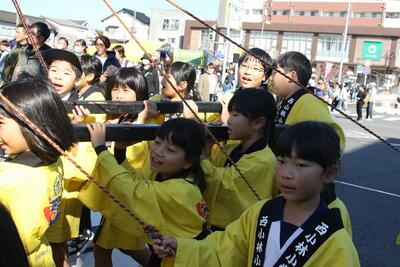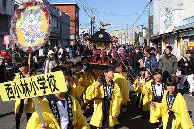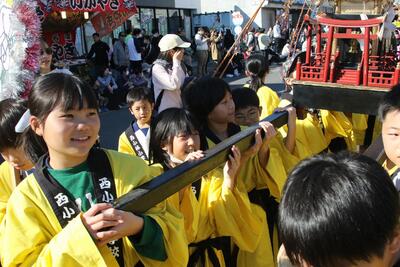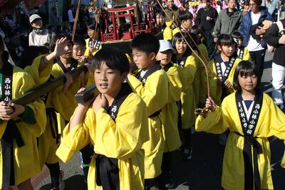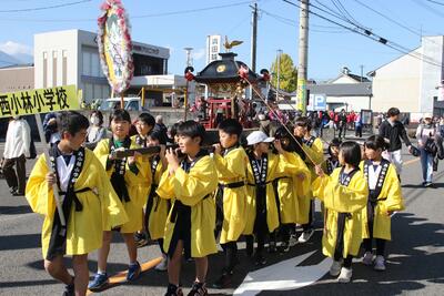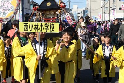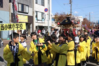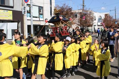 11月23日、秋晴れの空の下、こばやし秋まつりに参加しました。今年は、1年生から6年生までの23名が元気いっぱいに神輿を担ぎ、街を練り歩きました。黄色い法被に身を包んだ子どもたちは、掛け声を合わせながら力強く神輿を担ぎ、沿道の皆さんからたくさんの声援をいただきました。地域の方々や保護者の皆さんに見守られながら、子どもたちは最後まで笑顔で頑張り、祭りの雰囲気を存分に楽しむことができました。保護者の皆さまには、朝早くから準備や送り迎えなどご協力いただき、本当にありがとうございました。皆さまのおかげで、子どもたちは安心して楽しい時間を過ごすことができました。応援してくださった皆さま、本当にありがとうございました!