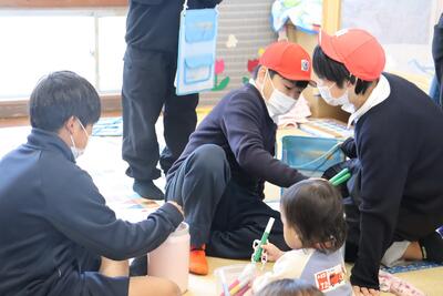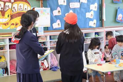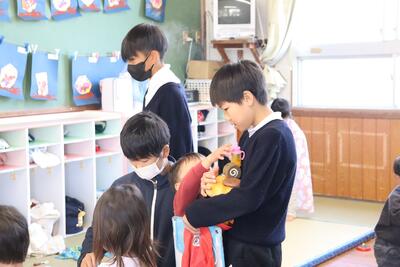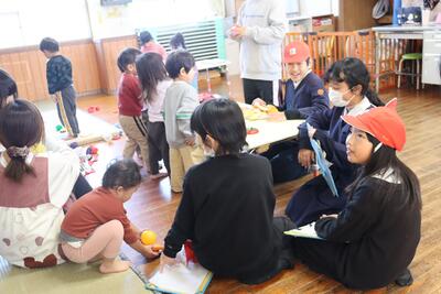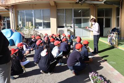 今日は、5年生が地域の保育園を訪問しました。園児たちと一緒に遊んだり、おもちゃを使って楽しい時間を過ごしたり、笑顔があふれるひとときとなりました。園庭では元気いっぱいに体を動かし、室内ではままごとやブロック遊びを楽しむ姿が見られました。さらに、保育園の先生方へのインタビューも行いました。「どんなことに気をつけて保育をしているのですか?」「子どもたちが喜ぶ遊びは何ですか?」など、事前に考えてきた質問をしながら、保育の工夫ややりがいについて学びました。先生方のお話を聞くことで、子どもたちは保育の仕事の大切さや、園児一人ひとりに寄り添う思いを感じ取ることができました。