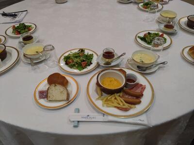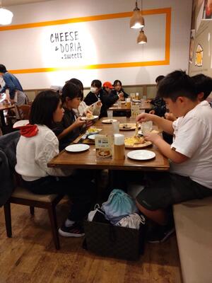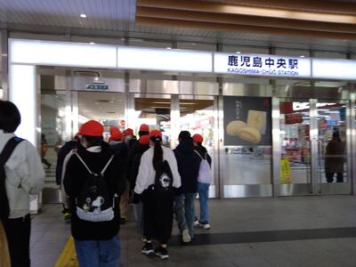 鹿児島中央駅に到着し、整列してアミュプラザへ移動しました。駅前でしっかりと説明を受け、いよいよ楽しみにしていた昼食の時間です。レストランに入ると、テーブルには美味しそうな料理が並び、みんな笑顔で食事をスタート。チーズたっぷりのドリアやパスタなど、どれも食欲をそそるメニューばかりです。仲間と一緒に食べる食事は、やっぱり特別ですね!