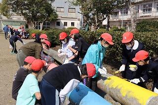 上級生と下級生が力を合わせて、学校がとてもきれいになりました。