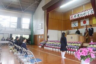 来賓の皆様、保護者の皆様に見守られ、卒業生30名が卒業証書を校長から手渡され、学び舎を巣立ちました。