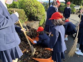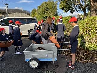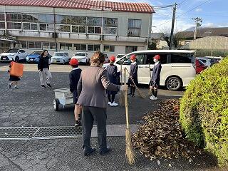 1学期最初の登校日の朝、一人、また一人と次々に落ち葉を集める姿が増えていきました。