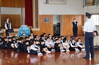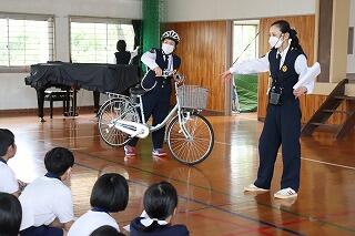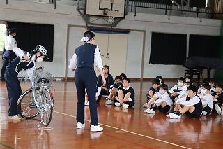 1年生もそろい、全校児童が通常授業となった今日、1・2年、3・4年、5・6年でそれぞれ交通安全教室を実施しました。