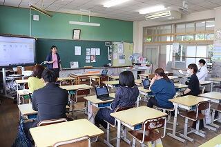 5年生が須木小の5年生と一緒に、オンラインで英語の授業をしました。