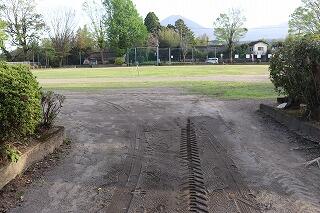 運動場トラック整備工事に合わせて、くぼみが顕著だった「ブランコ地面」と「渡り廊下横地面」も整備していただきました。ありがとうございました。