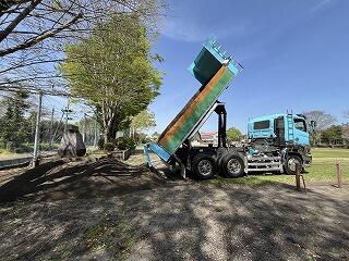 給食コンテナ室周辺の地面の陥没が大変危険でしたが、本日整備工事が無事終了しました。