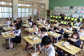今日から1年生も給食が始まりました。