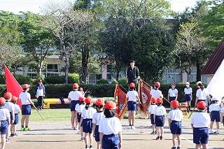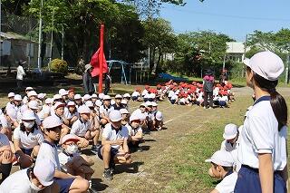 開会式、ラジオ体操、退場、エール交換、応援、役員招集の練習をしました。